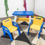 • Design Coloré et Attrayant : L’ensemble est composé d’une table bleue avec des chaises assorties en jaune et bleu, captivant instantanément l’attention des enfants.